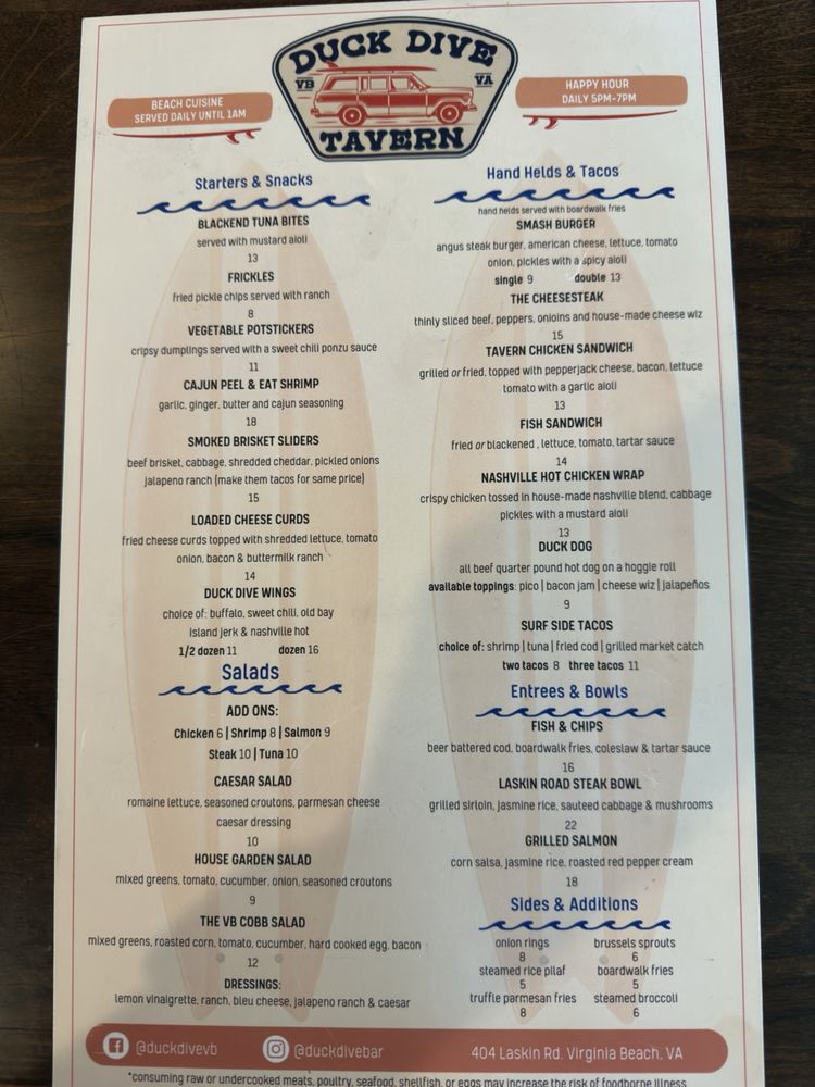 Welcome to Duck Dive Tavern, a vibrant dining destination nestled in the heart of Virginia Beach. This lively tavern is celebrated for its eclectic menu featuring mouthwatering burgers, zesty tacos, and classic American fare, all crafted to elevate your beachside experience.
